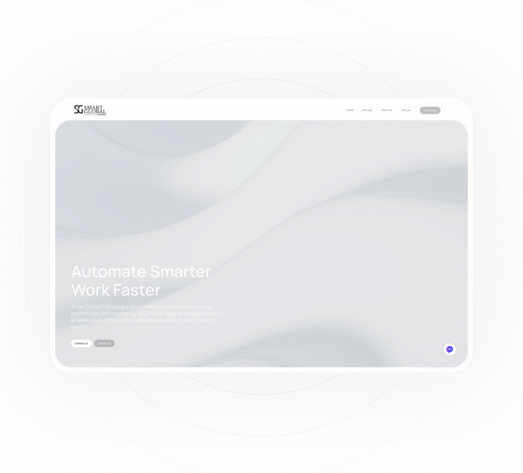 Smart Global Hub designs and develops professional websites, powers them with marketing, SEO, mobile apps, and AI automations — all seamlessly connected to help your business scale online and beyond.